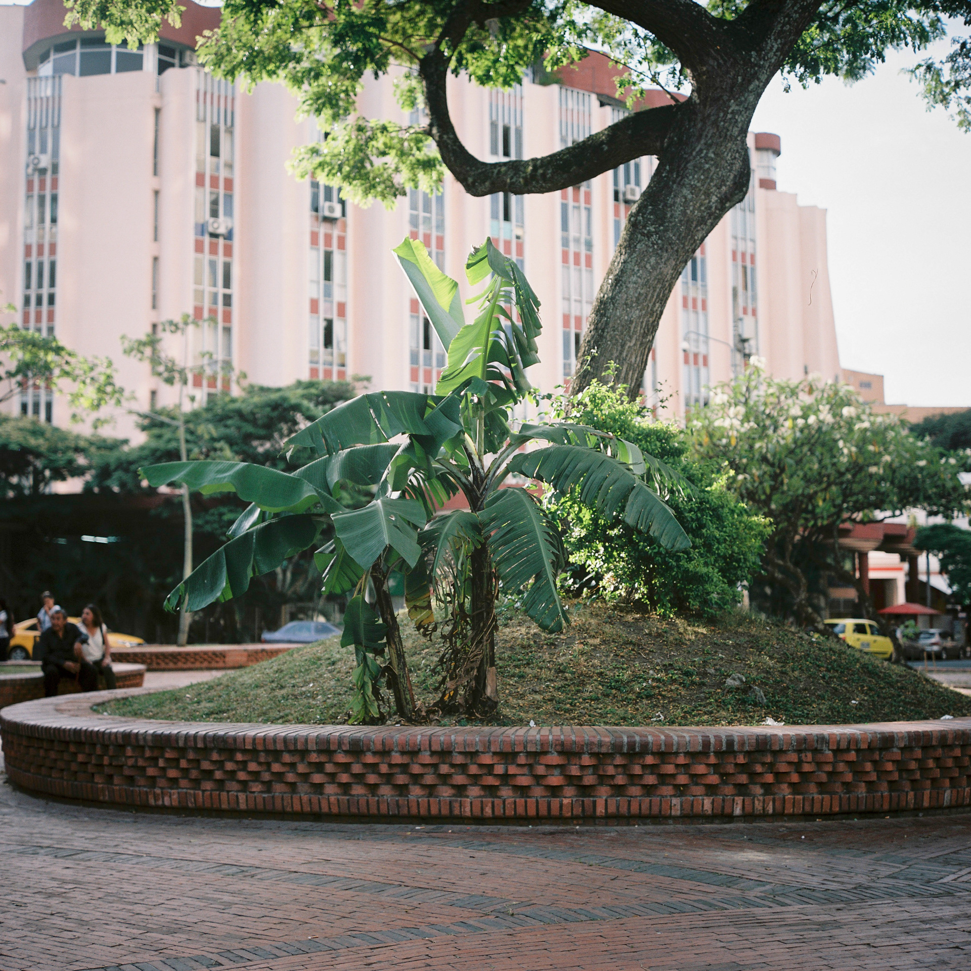 Massive people migration from the countryside to cities through time. A rural element present in our city that resist and is witness of that non-conscious memory of our roots in the countryside. A metaphor for the countryside as the starting point of many cities were eating was as easy as just taking what nature offered and now we have surrendered to more complex economical and social dynamics. The banana tree erasing and rebelling to the man made urban limits.